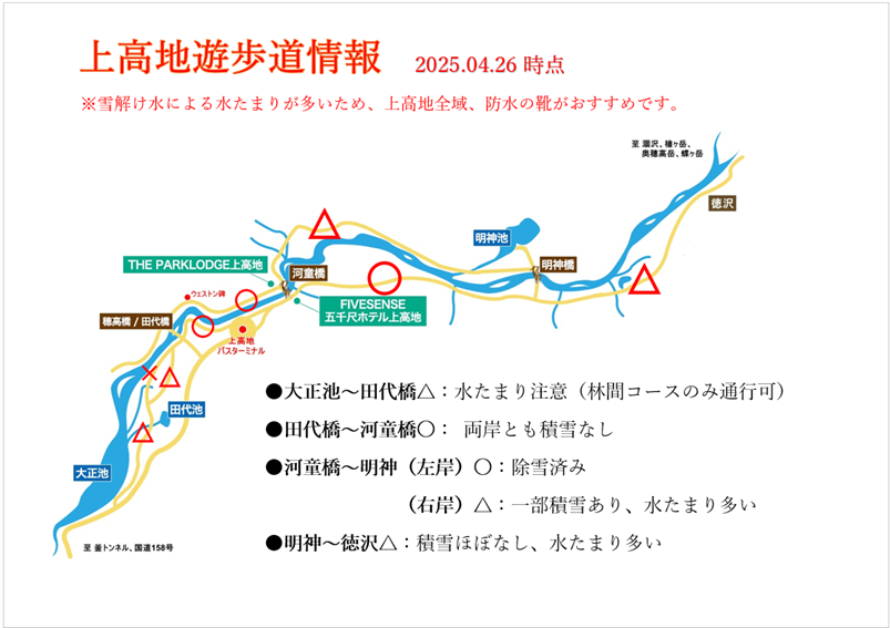 上高地遊歩道積雪情報2025年4月26日 FIVESENSE2025-04-26T14:43:02+09:002025-04-26| Share FacebookXRedditLinkedInWhatsAppTumblrPinterestVkXing電子メール