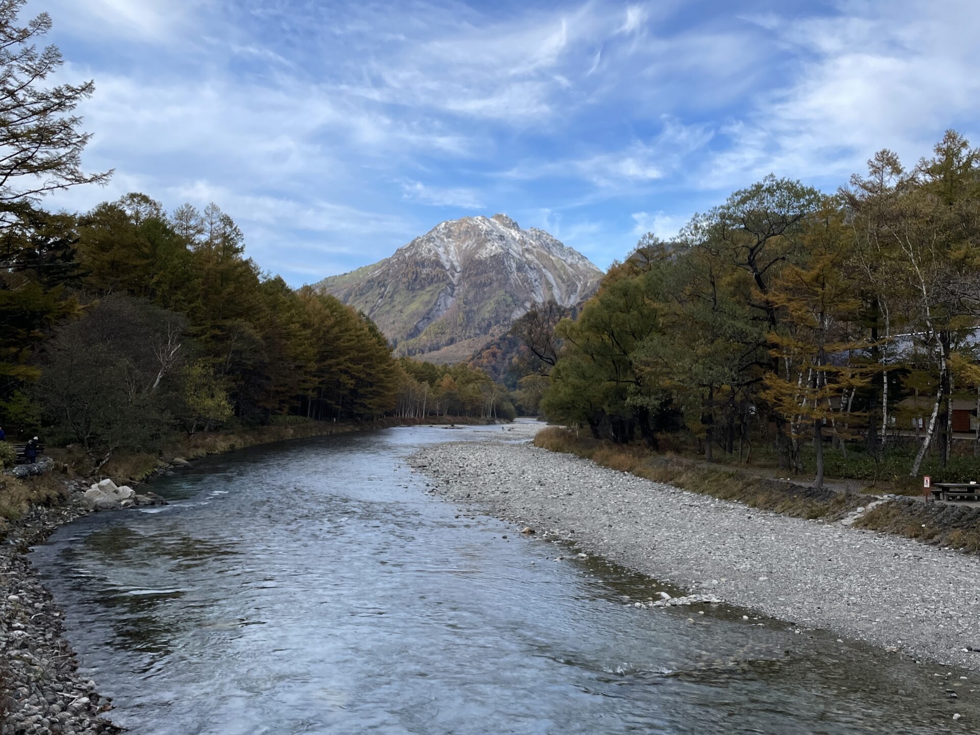 上高地で撮影した梓川と焼岳